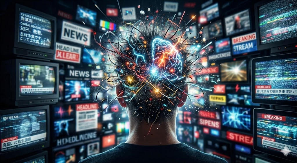 Ez olyan, mintha egy hangszórót folyamatosan magas hangerőn használnánk: egy idő után a halk hangokat már alig érzékeljük. Az idegrendszerünk számára is a magas intenzitás válik "normálissá", erre kalibrálódik, amit a média egyre csak fokoz folyamatos, egyre sokollóbb impulzussal. A mi válaszreakciónk pedig erre az egyre fokozódó szorongás, pánik, stressz; ingerlékenység; koncentrációs nehézség; alvászavar; kiégés, stb.
