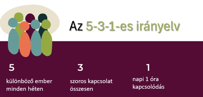 Tűzzék ki célul, hogy kapcsolatba lépnek 5 különböző emberrel minden egyes héten, ebből erősítsenek meg legalább 3 kapcsolatot, hogy napi egy órát tudjanak kapcsolódni valakivel.